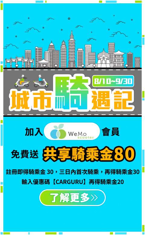 ▶輸入優惠碼【CARGURU】再得騎乘金20 🤑🤑