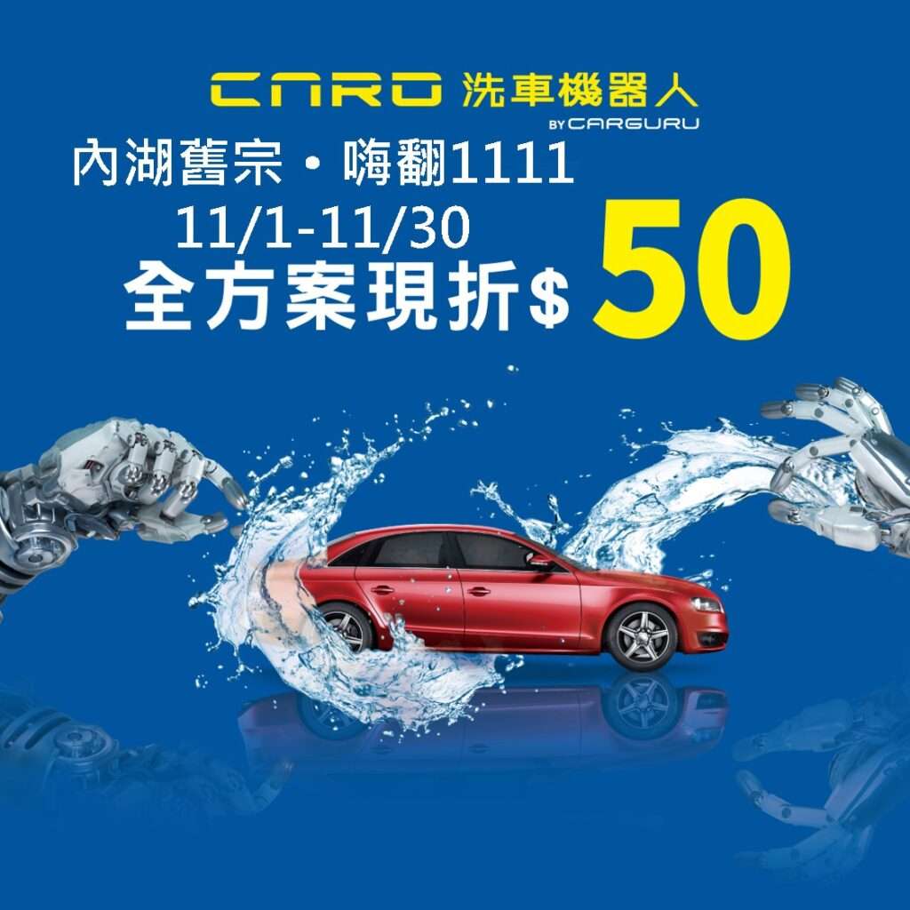即日起-11/30,車咕嚕會員可享{內湖舊宗}全時段,任一洗車方案,全時段通通現折