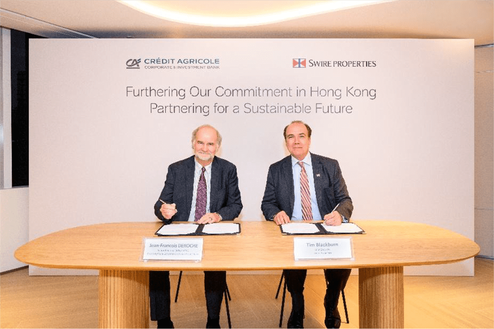 簽約儀式於太古廣場舉行,太古地產行政總裁彭國邦、太古地產首席財務官龍雁儀、太古地產辦公樓業務董事 Don Taylor,聯同東方匯理銀行亞太區高級區域總裁 Jean-Francois Deroche、東方匯理銀行香港分行行政總裁 Edouard O’Neill,以及東方匯理銀行亞太區及香港營運總監Olivier Venencie 共同主禮。