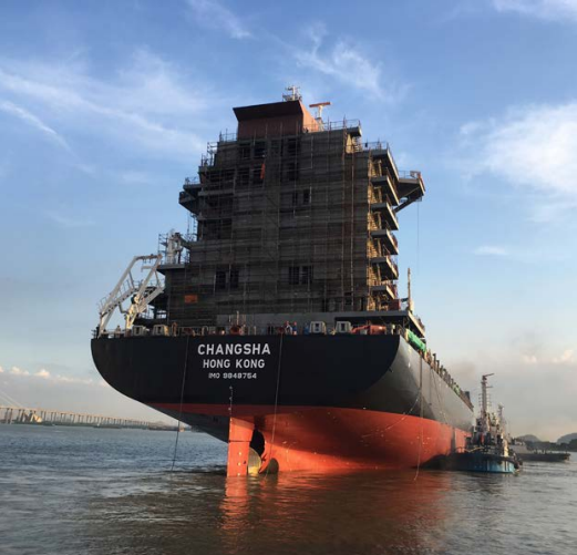 2019年7月,太古輪船有限公司(“太古輪船”)內燃機輪“長沙號”(MV Changsha )從乾船塢移至棲裝船台, 順利實現首次下水。 “長沙號”在正式交付前,會於今年稍晚進行海試。