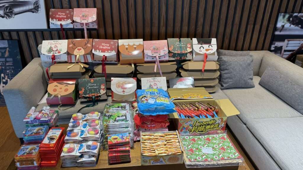 耶誕禮盒愛心活動 2025-11-25 在太古集團慈善信託基金(太古基金)的支持與推動下,今年舉辦”Boxful of Love”耶誕愛心活動,透過禮盒募集,用滿滿的愛與行動,為忠義育幼院的孩子送上節日的溫暖與祝福。更在11月20日舉辦「愛心大使日」,由同仁親手包裝75盒裝滿玩具、文具與生活用品耶誕禮盒,並撰寫祝福卡片,化身「愛心大使」,將節慶的溫暖與祝福親手傳遞給孩子們,串聯城市每一份愛心,讓孩童在成長的路上感受到力量與希望。